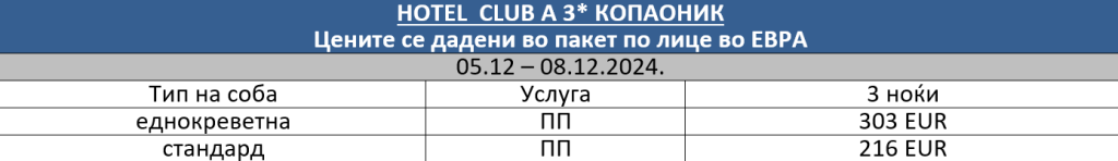SKI OPENING Копаоник CLUB A 3* 05-08.12.2024